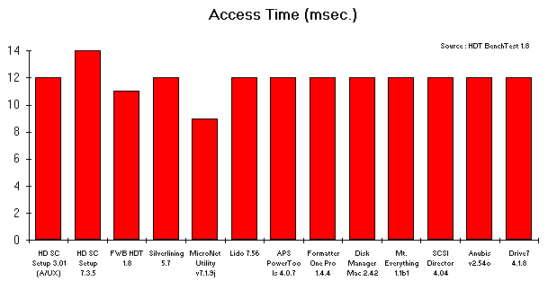 - I do not understand how the benchmark of some utilities could result in a faster or slower access time than the average 12 msec.; access time should be dictated fully by the drive. Not by the software that drives it. If someone has a clue let me know.