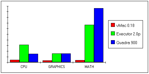 vMac and Executor (both on a Pentium 166) compared against a 25 MHz 68040