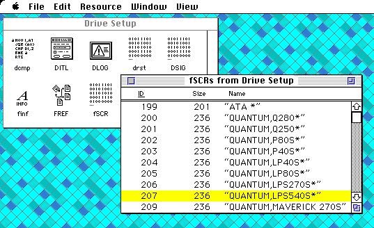 A number of people have inquired whether Drive Setup could be patched so that it recognizes all drives. As a matter of fact Drive Setup recognizes a lot more drives than HD SC Setup, most notably a number of removable drives. Apple does not state which drives are recognized but a list is contained in one of Drive Setup's resources. If you are curious about how to find this list or want to know how to make Drive Setup recognize your drive, read on.